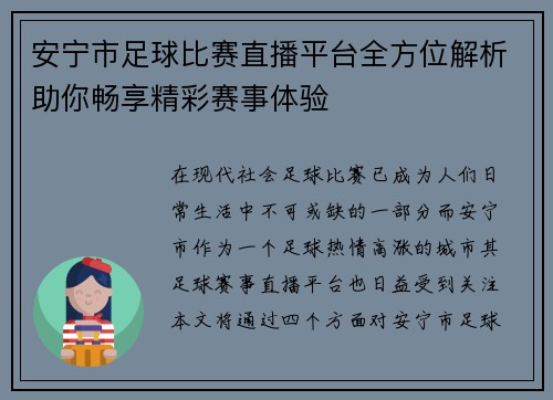 在大别山的壮丽背景下,一场精彩绝伦的足球比赛如火如荼地进行着。本文将对这场足球比赛的直播视频进行全程回顾,并分享其中的一些精彩瞬间。首先,我们将从比赛前的准备工作谈起,描述赛事的氛围与观众的热情;接着,回顾比赛过程中的关键时刻,包括进球、犯规等重要事件;第三部分将聚焦于运动员们在赛场上的表现以及他们...